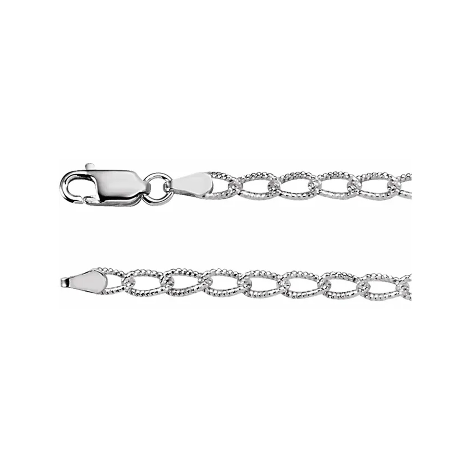 CH571 – This 9.5″ Sterling Silver 3.2mm curb chain anklet or ankle bracelet is popular, durable jewelry piece, made from sterling silver. This polished anklet offers a secure lobster claw clasp and a classic, flat-linked design suitable for Summer daily wear. Please be aware that Saltwater causes sterling silver to tarnish rapidly. It is best to avoid swimming with Sterling Silver Jewelry in the ocean.