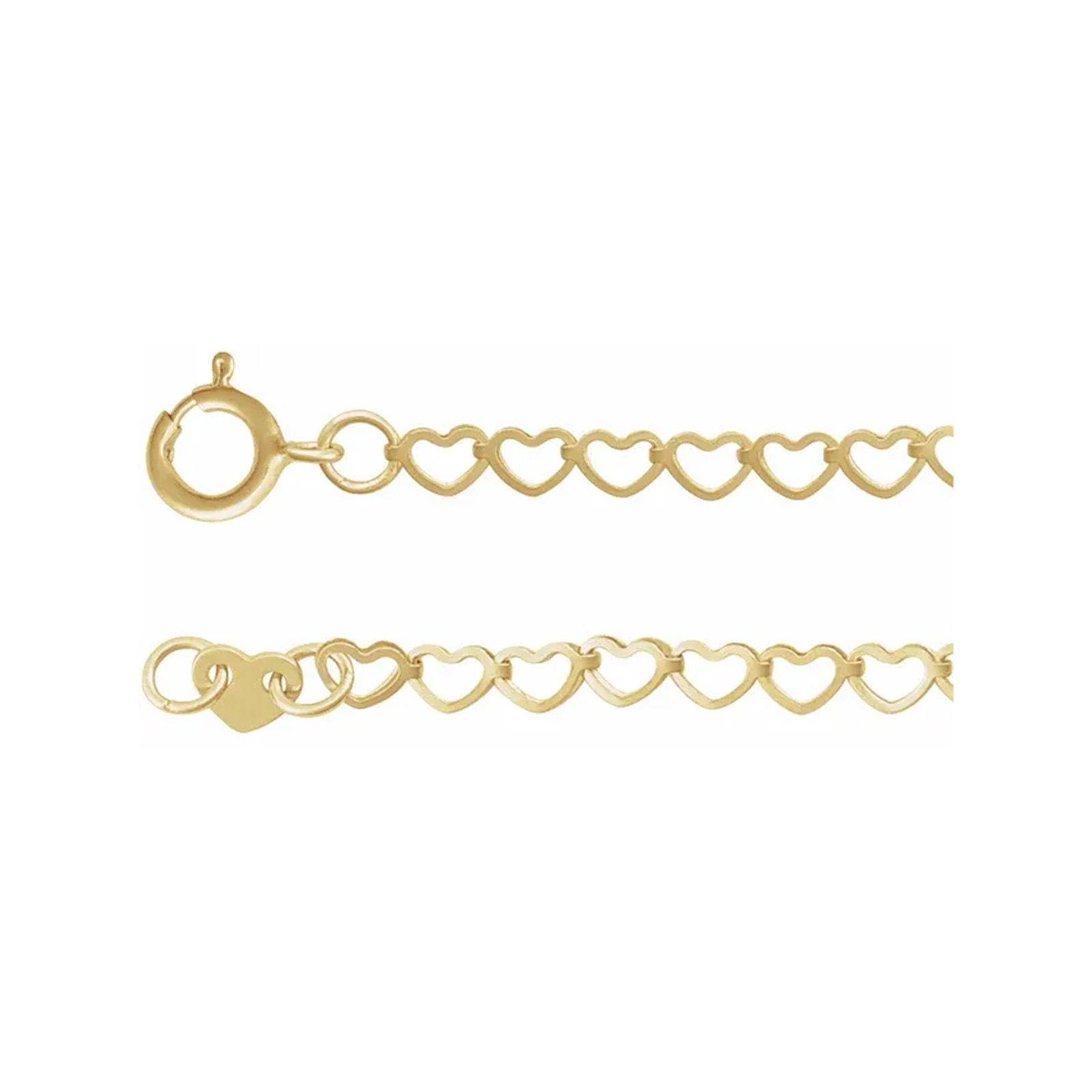 Anklet or Ankle Bracelet. 14k Yellow Gold, 9” 2.5 mm Heart Chain, Spring Ring Clasp.