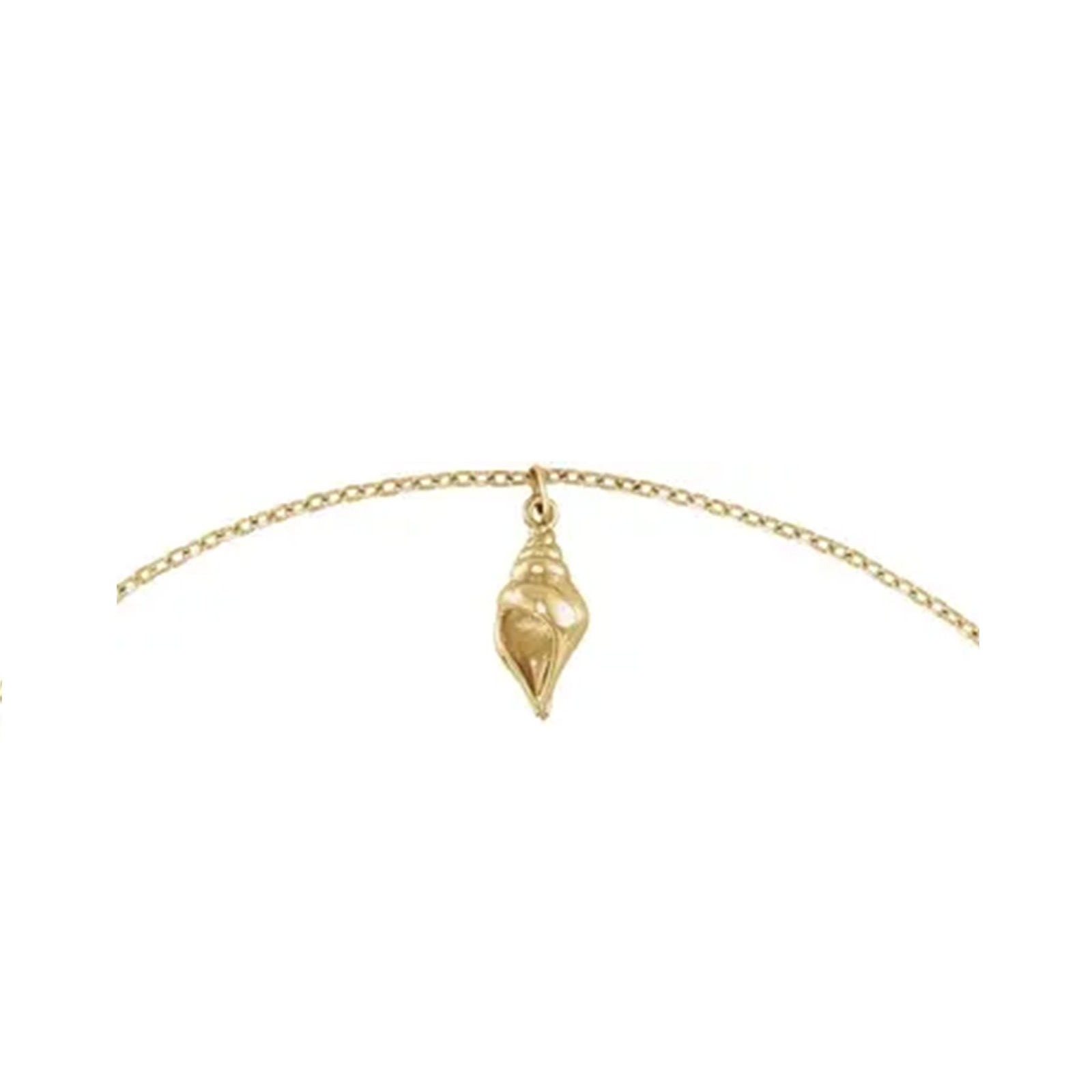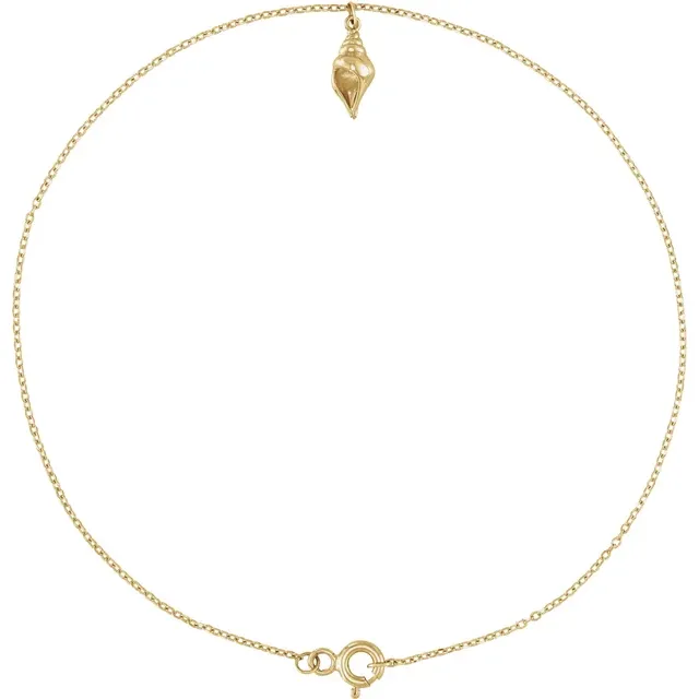 Solitaire Shell Anklet or Ankle Bracelet – 14K Yellow Gold, 12 x 4.91mm Seashell Charm, 9″ Cable Chain, Spring Ring Clasp.