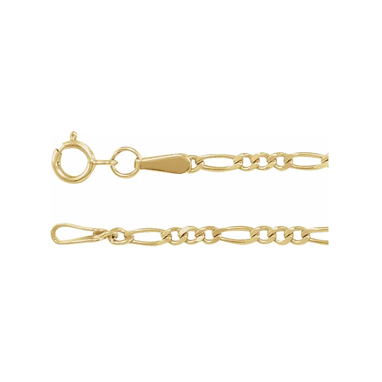 Chain Necklace, Figaro Diamond-Cut Style. 14K Yellow Gold. Chain Width 1.9mm, Chain Lengths 16″, 18″, 20″, 24″. Spring Ring Clasp.