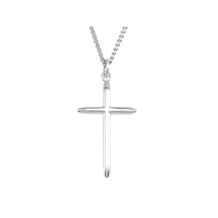 Cross Necklace or Pendant. Pendant Dimensions 25 x 15mm. Pendant Available in 14k Rose Gold, White Gold, Yellow Gold and Sterling Silver. Necklace in Sterling Silver. Chain Passage Dimensions 2.8 x 2.8mm. Necklace Chain Type Curb. Chain Length 18″. Chain Width 1.6mm with Spring Ring Clasp.
