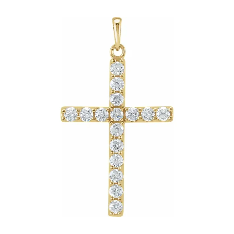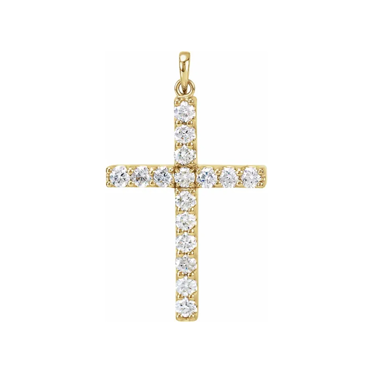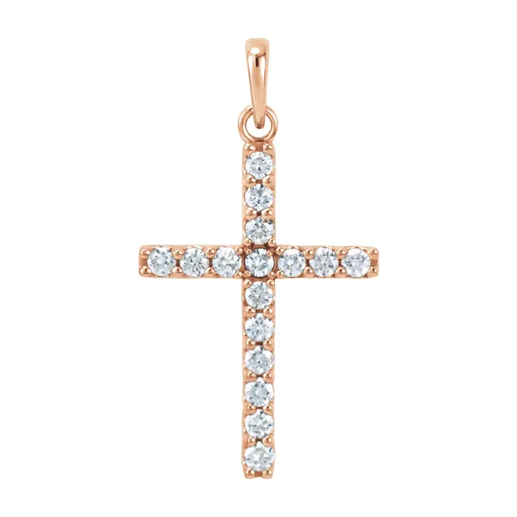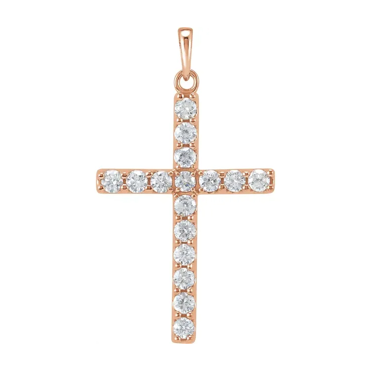 Cross Pendant With Diamonds. Available in 14k Rose Gold, 14k White Gold, 14k Yellow Gold and Platinum. Lab-Grown Diamond or Natural Diamond. Diamond Clarity SI1-SI2. Diamond Color G-H.
