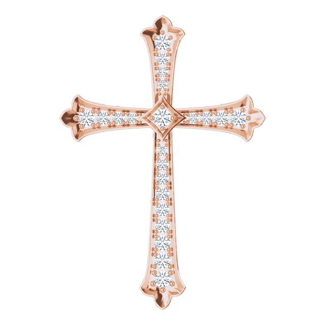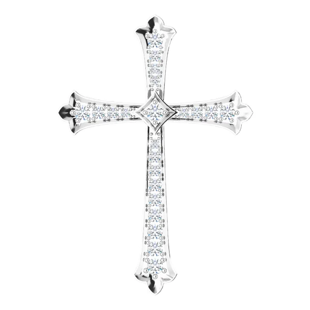 Cross Pendant With Natural Diamonds. Pendant Dimensions 35.7 mm x 25.1 mm. Diamond Color H+, Diamond Clarity I1, Total Diamond Carat Weight 1/2 CTW.