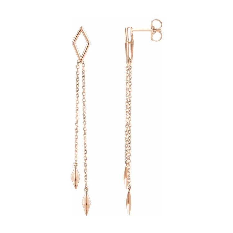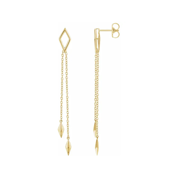 652334 / Dangle Earrings, Chain Design. Dimensions 60.8 x 5.mm. Available in 14k Rose Gold, 14k White Gold and 14k Yellow Gold. Friction Backs Included. Formal or Evening Out Earrings
