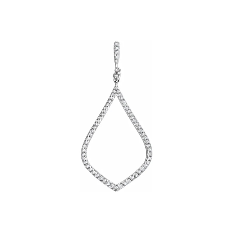 651979 / Geometric Diamond Pendant. Pendant Dimensions 37.5 x 17.8mm. Available in 14k Rose Gold, 14k White Gold and 14k Yellow Gold. Total Natural Diamond Carat Weight 1/4 CTW. Diamond Clarity I1, Diamond Color H+.