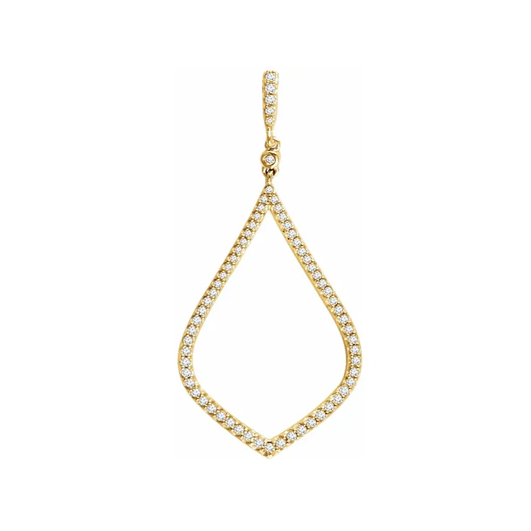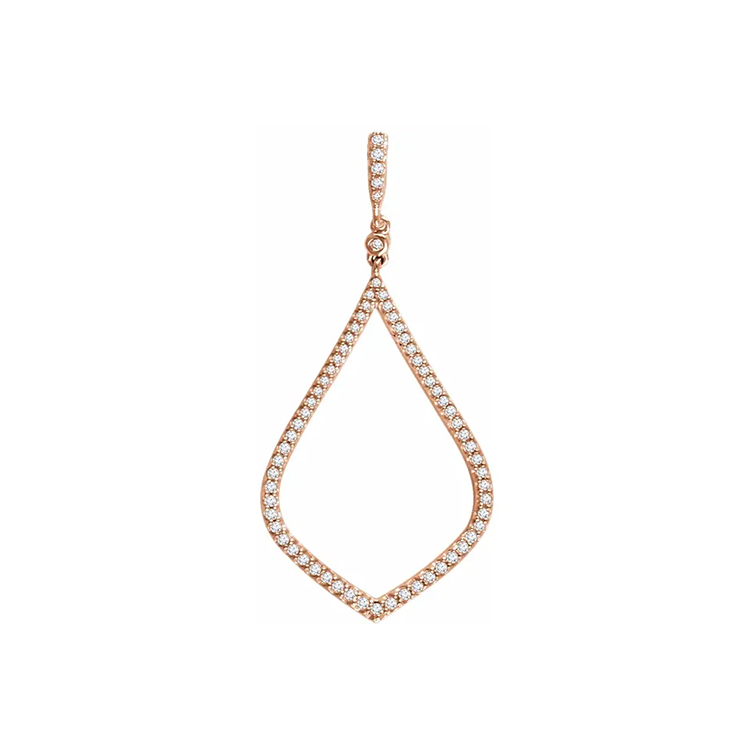 Geometric Diamond Pendant. Pendant Dimensions 37.5 x 17.8mm. Available in 14k Rose Gold, 14k White Gold and 14k Yellow Gold. Total Natural Diamond Carat Weight 1/4 CTW. Diamond Clarity I1, Diamond Color H+.