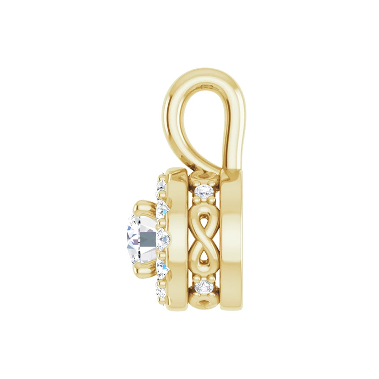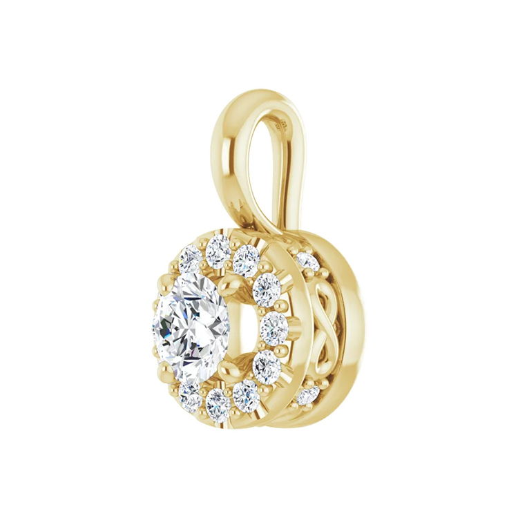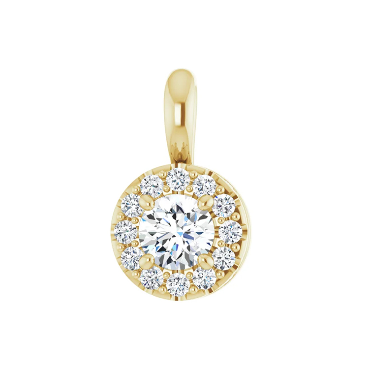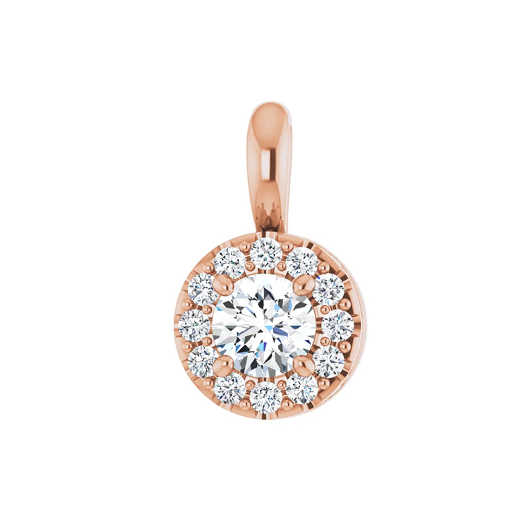 Halo-Style Diamond Pendant. With 4.1mm :: 3/8 CTW Natural Diamond, Clarity/Color I1, G-H. Available in 14k Rose Gold, 14k White Gold and 14k Yellow Gold and Platinum.