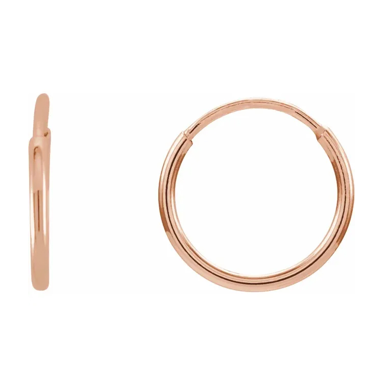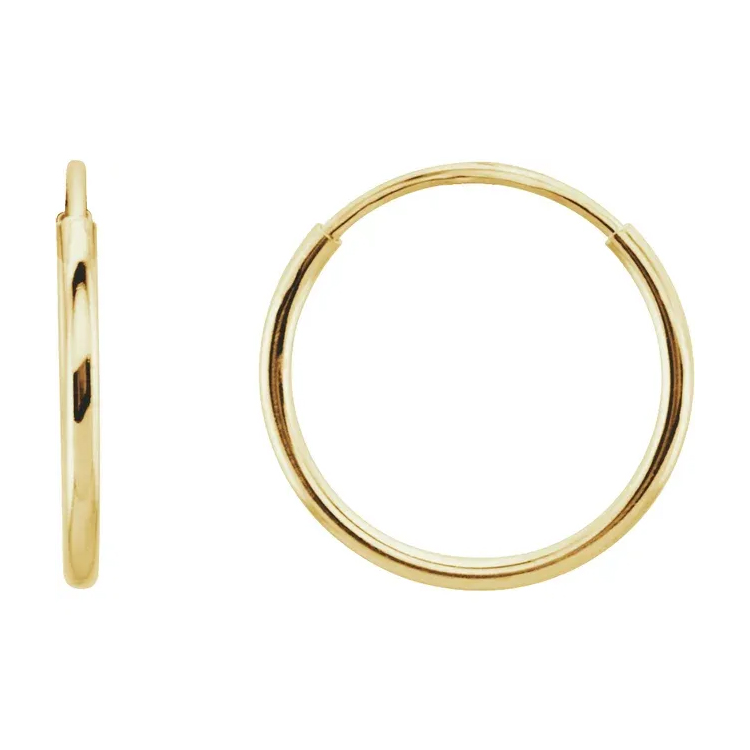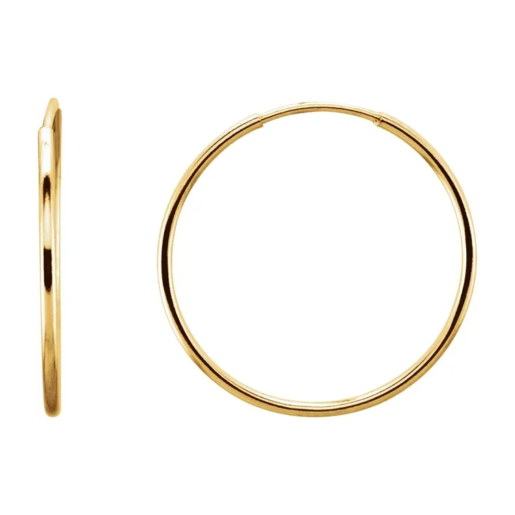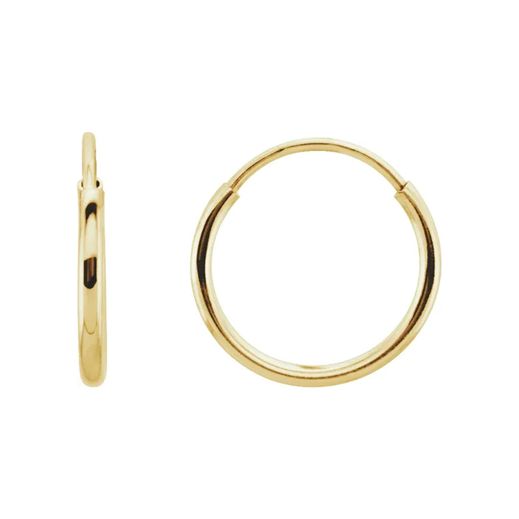 625 / Classic hollow endless tube hoop earrings are lightweight for comfortable, all-day wear. Seamless-looking circular earrings with a hidden closure where a thin wire post inserts into the tube, creating a continuous loop for a modern, minimalist look, popular for all piercings from lobes to cartilage, offering comfort and versatility in various sizes and metals like gold or silver. A classic look that complements any style.