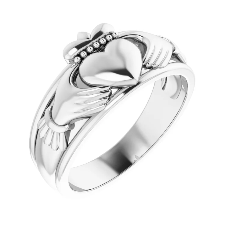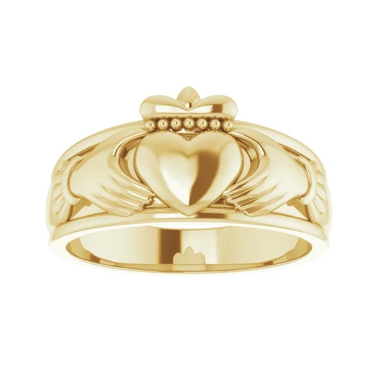 Men’s Claddagh Ring. Available in 10k Yellow Gold, 14k Yellow Gold, 10k White Gold, 14k White Gold, Continuum Sterling Silver & Platinum.