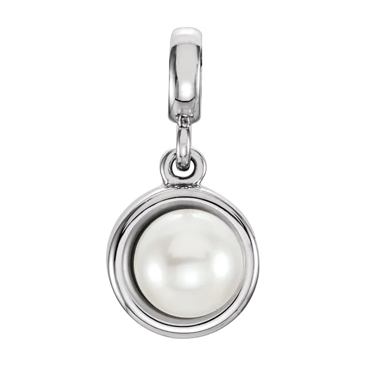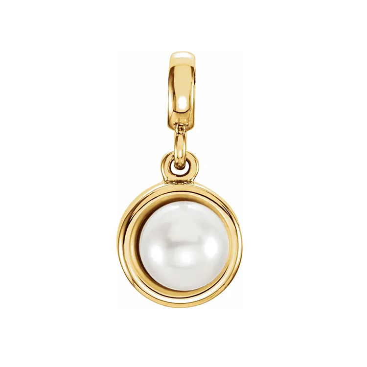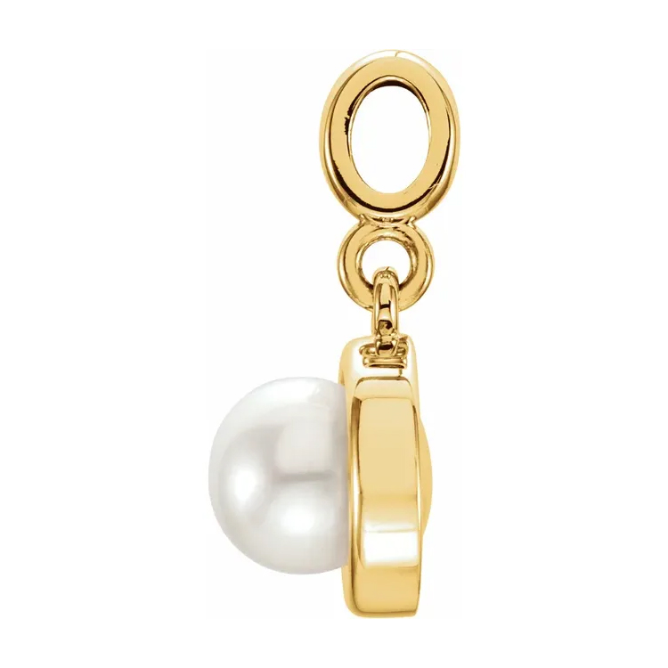 Pearl Pendant, Freshwater Cultured. Available in 14k White Gold and Yellow Gold. Freshwater Cultured Pearl Size Range 5.5-6.0 mm.