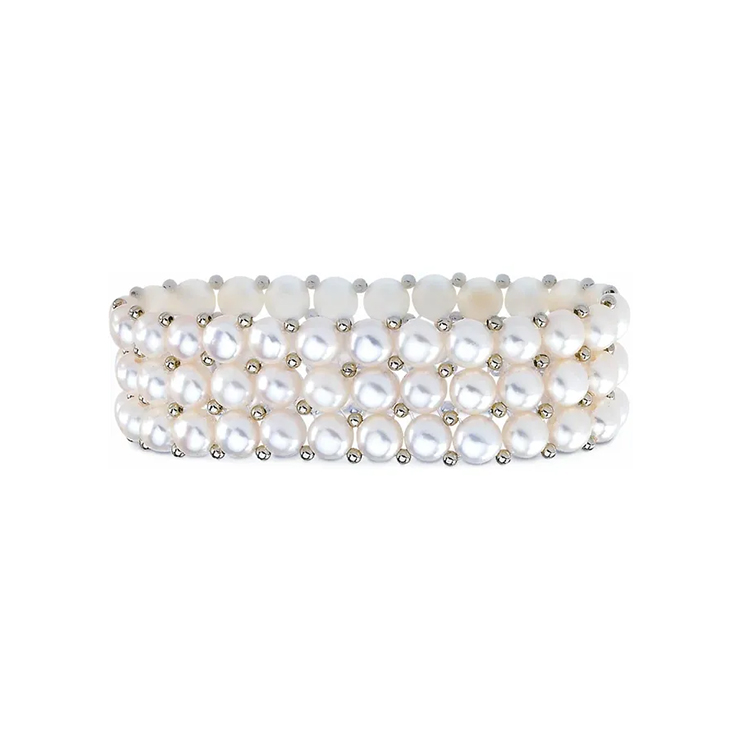 63928 / White Pearl Stretch Bracelet. 7″ Bracelet. Freshwater Cultured White Pearl. Pearl Size Range 5.0-6.0mm. Sterling Silver.