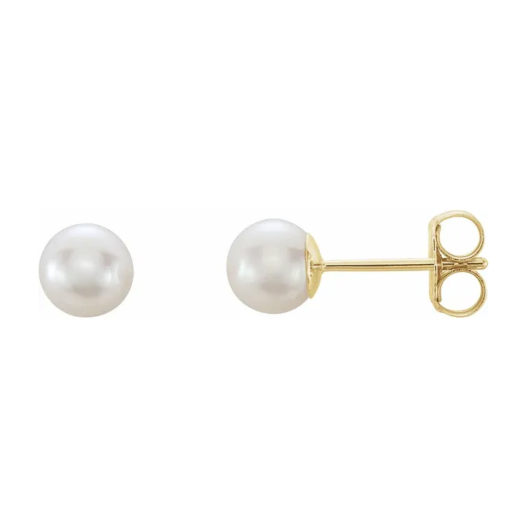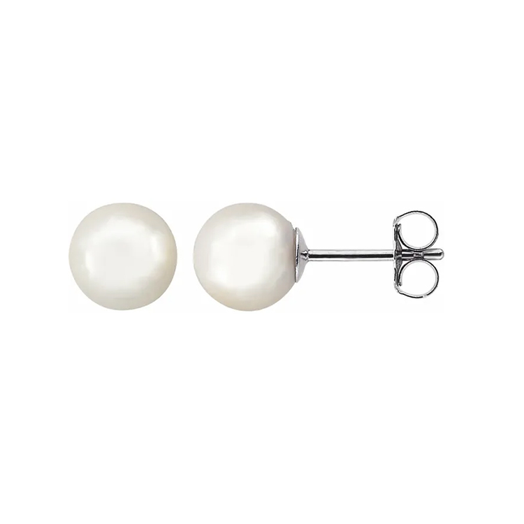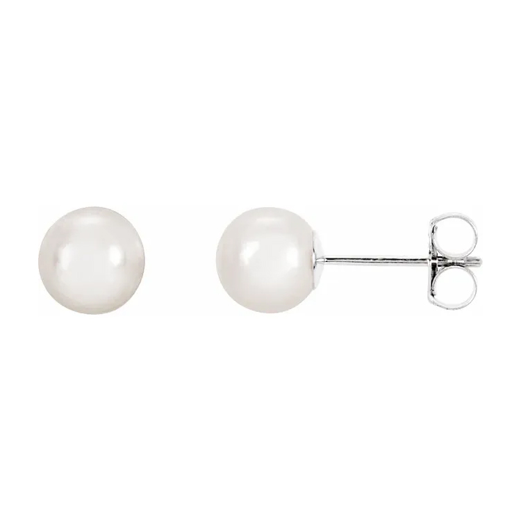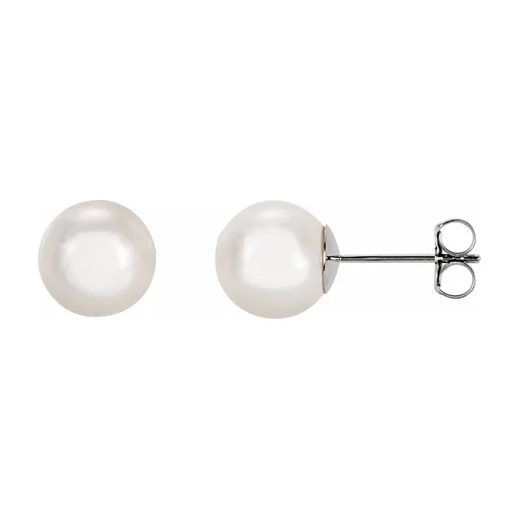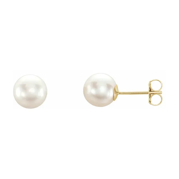 Akoya Pearl Stud Earrings. Available in 14k White Gold and 14k Yellow Gold, Cultured White Akoya Pearl Sizes 4mm, 5mm, 6mm, 7mm, 8mm. . Friction Backs Included.
